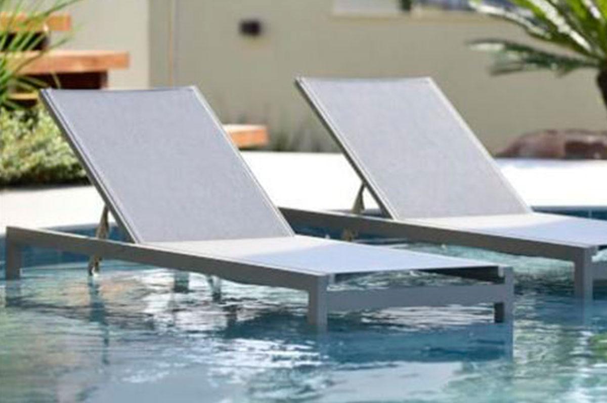 Fabricado en aluminio. Asiento y respaldo en tela.