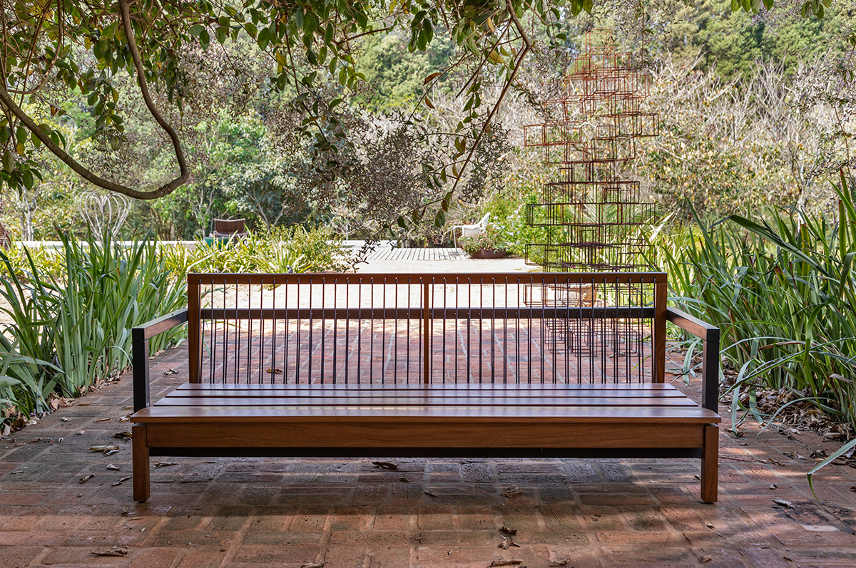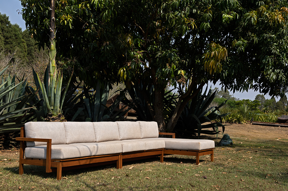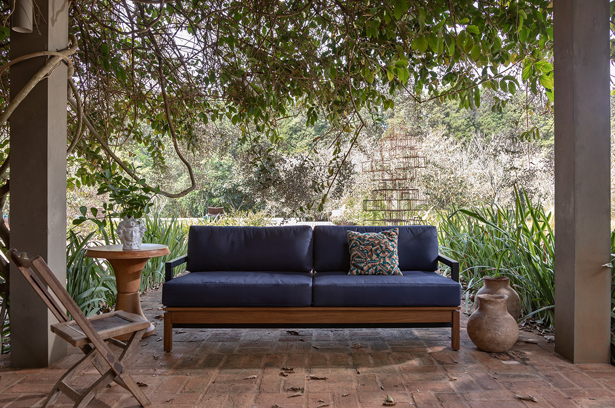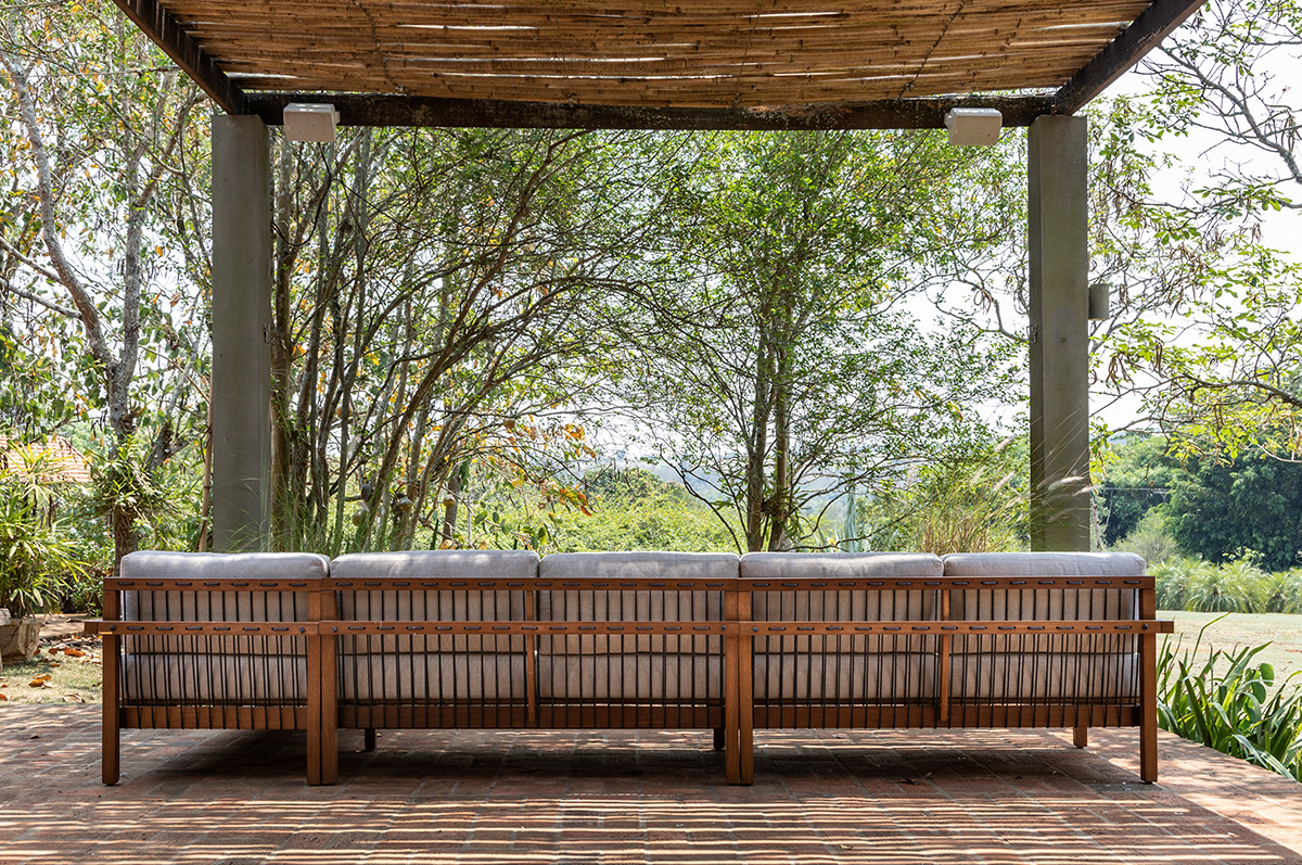 Sofá para zona exterior Tauato. Realizado con estructura de madera Cumaru y cuerdas.