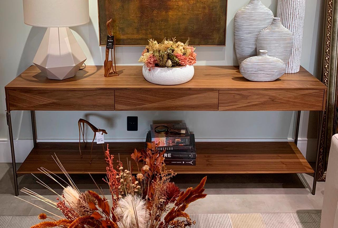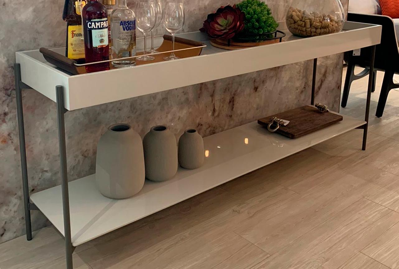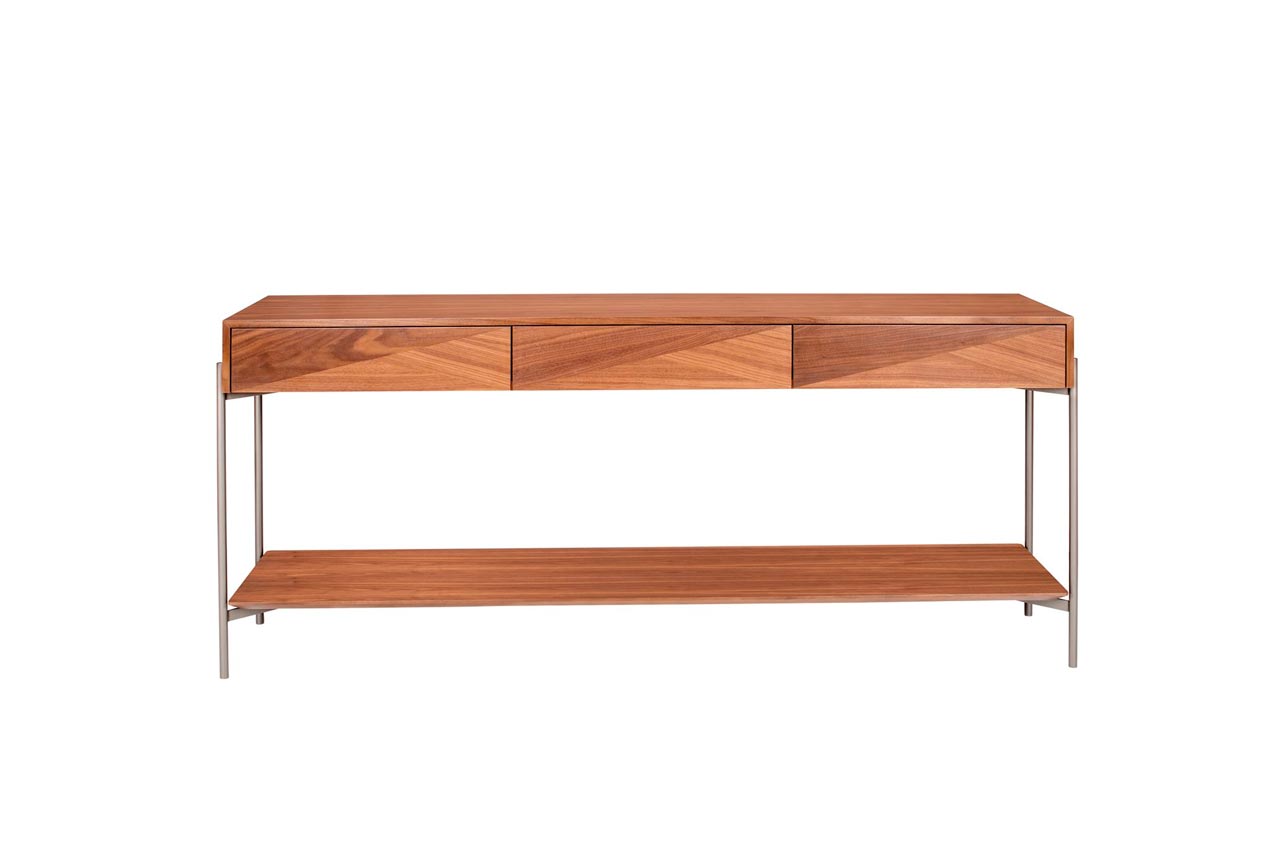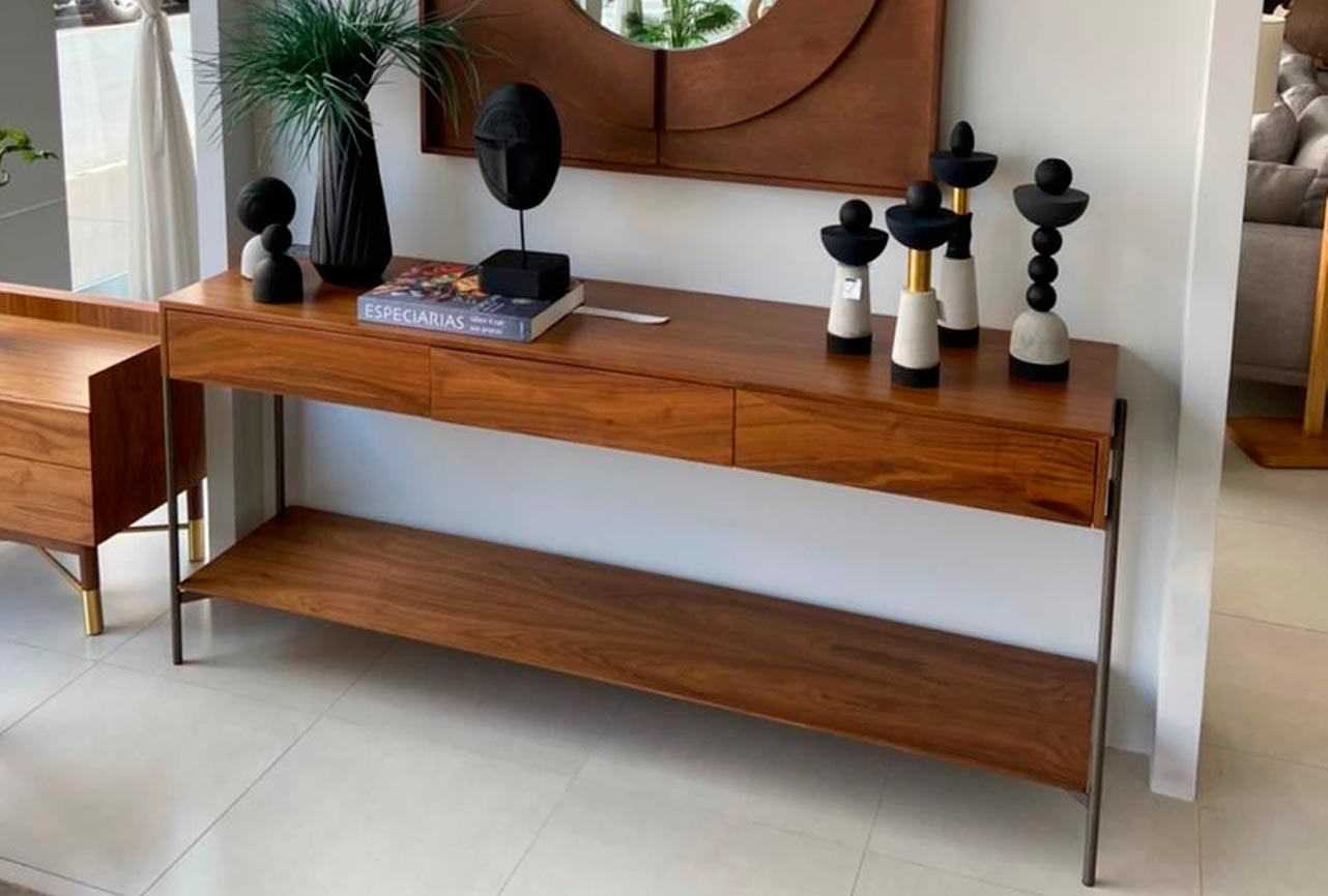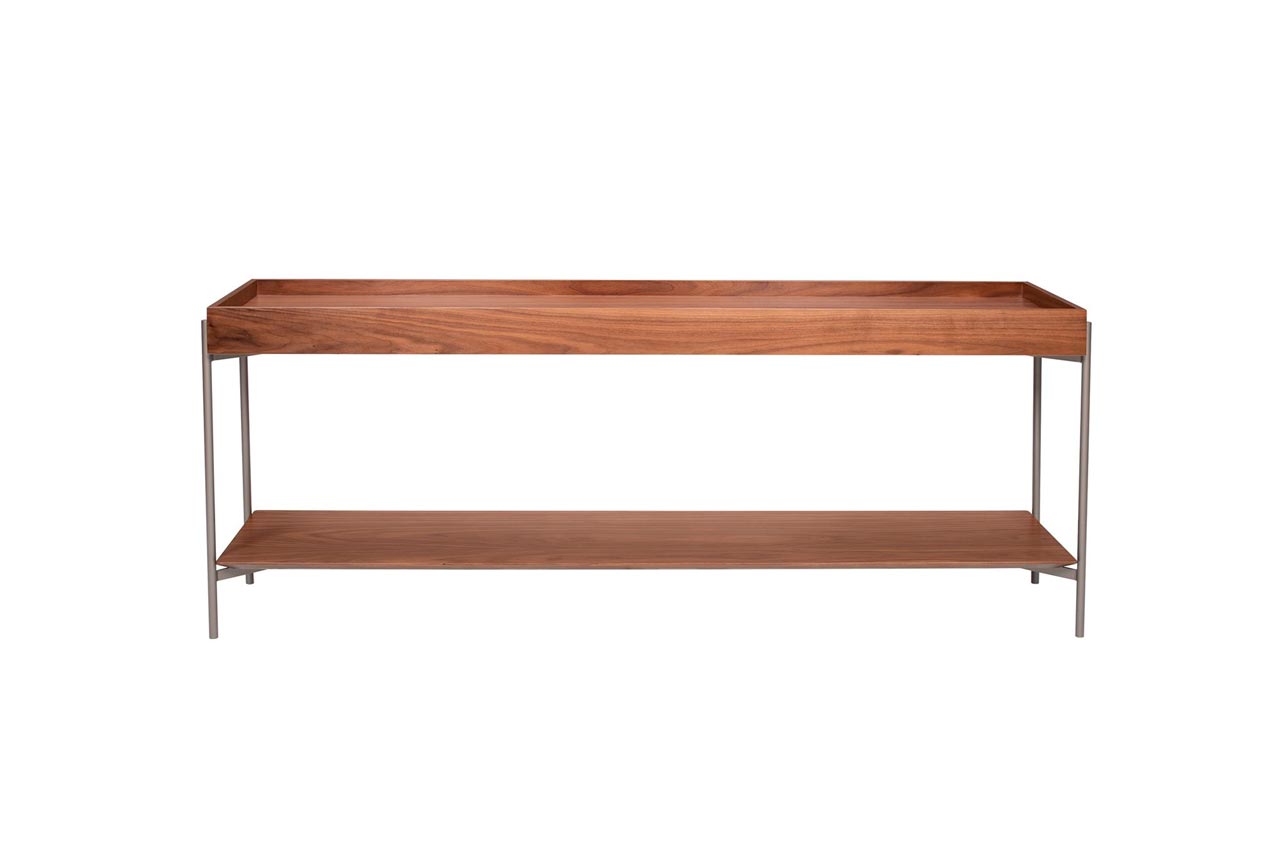 En nogal natural pala, con patas de metal pintado en onix metalizado