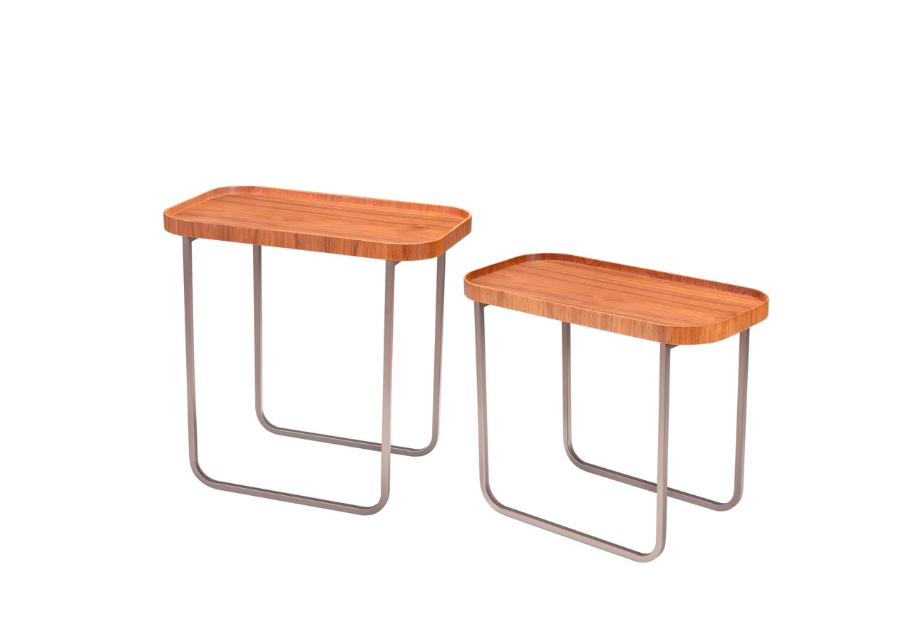 Con lamina de louro freijó natural, varilla de metal pintada en onix metalizado