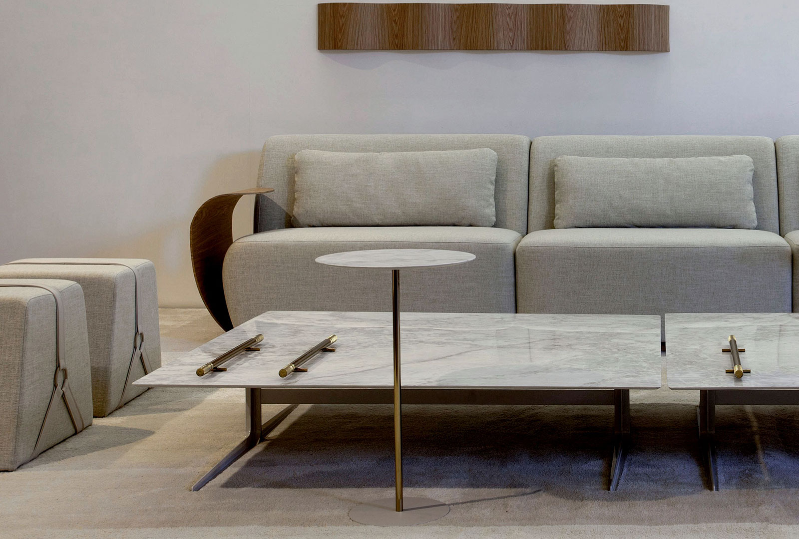 Mesa lateral en acero carbono pintado y cubierta em Marmol o acero.