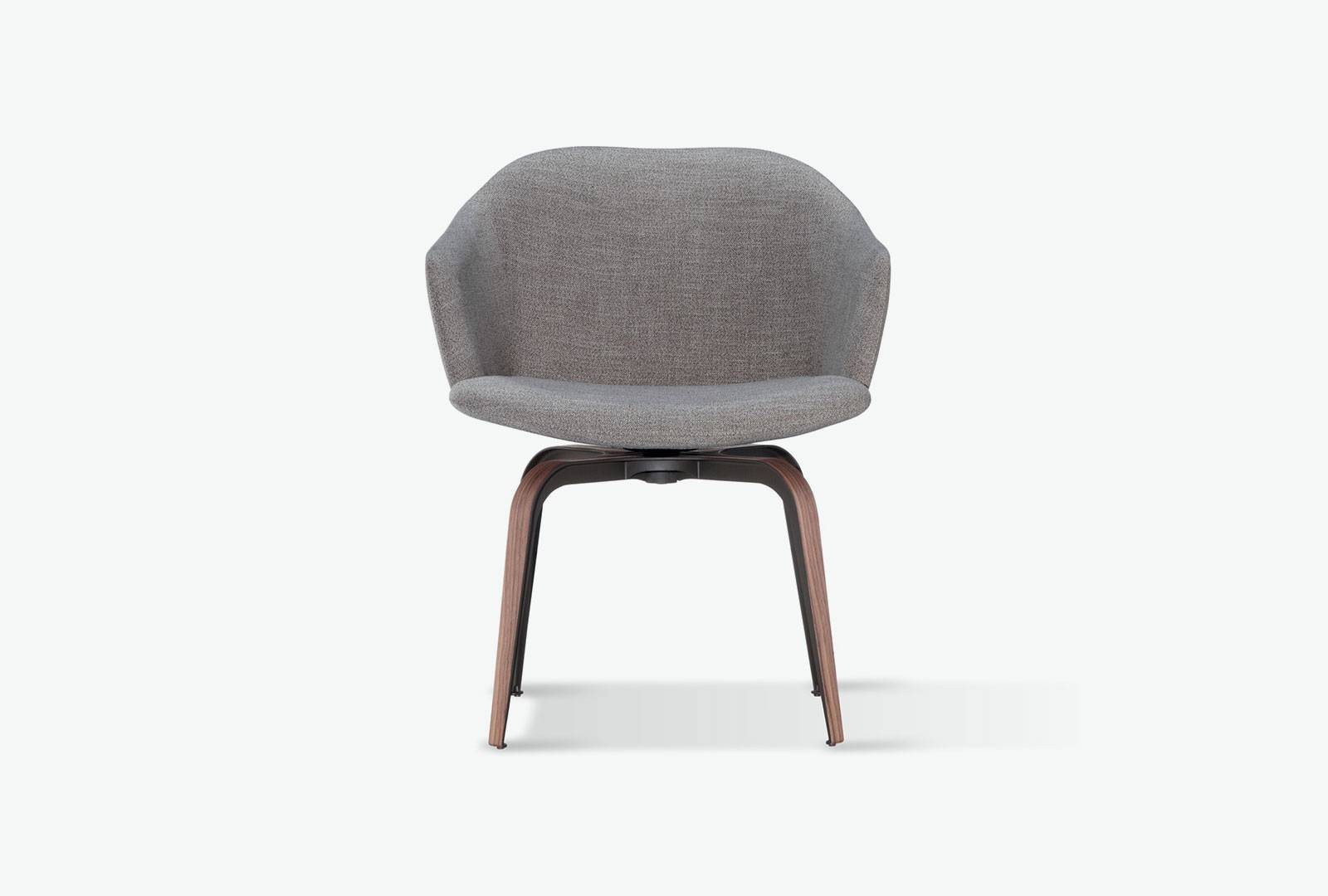 Silla fija o giratoria, patas en acero carbono, pintadas con aplicación de lamina de madera.