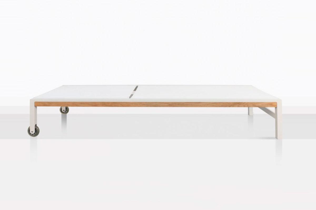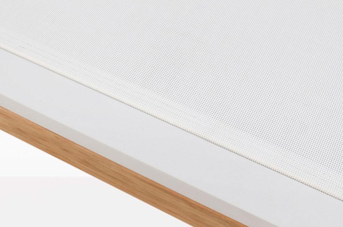 Fabricado en aluminio. Asiento y respaldo en tela.