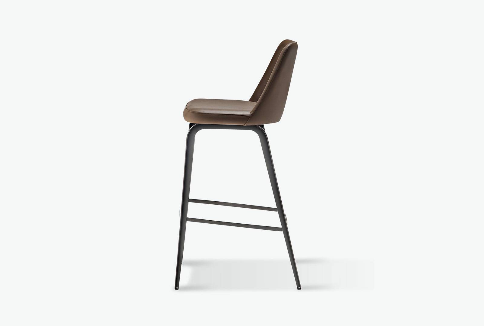 Banqueta tapizada con patas en acero acrbono, pintadas o con aplicación de laminas de madera.
