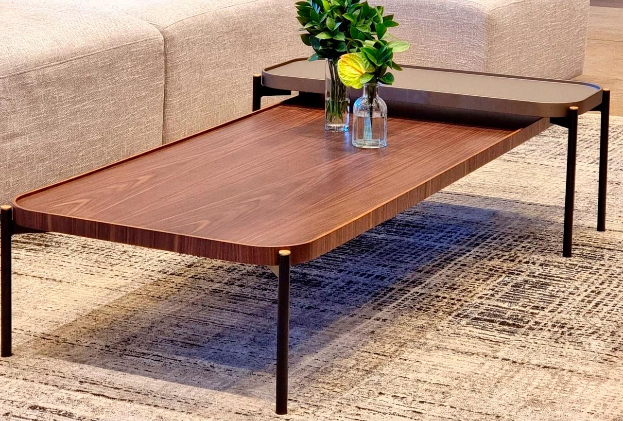 Amplia con palo em nogal natural, pies de metal pintado en negro mate con nuevo detalle dorado.